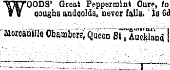 WOODS’ Groat Peppermint Cure, fo oougha andtjolda, never falls, is 6d Mercantile Chambers; Queen StTAucidand | ~':r~r