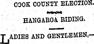 OOOK COUNTY ELECTION. HANGAROA RIDING. ADIEB AND GENTLEMEN,—
