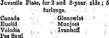 Juvenile Plate, for 2 and 8-year- olds ; 5 furlongs. Canada Glenowlet Euclid Munjeet Volodia Ivanhofif Pas Seul