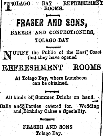 T OLAGO BAY REFRESHMENT BOOMS. FRASER AND SONS, BAKEBS AND CONFECTIONERS, TOLAGO BAY "rkTOTIFY the Publio of Ihe East; Coast JjN that they have opened REFRESHMENT ROOMS At Tolago Bay, where Lnnoheon can be obtained. All kinds of Summer Drinks on hand. -usb Balls BndJJParties catered for. Wedding andjiirthday Cakes a Speciality. FRASER AND SONS Tolago Bay.