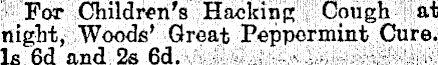 For Children's Hacking Cough at night, Woods’ Groat Peppermint Cure. Is 6d and 2s 6d.