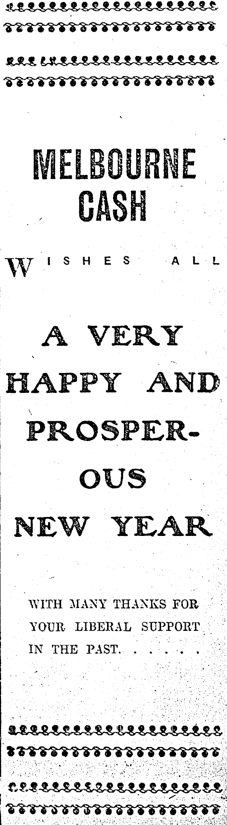 -rrrrrrrrrrrrrrrrrrr£ suti / rr^rrrrrrrrrrrrrrrrs MELBOURNE GASH w' s H ALL A VERY HAPPY AND PROSPEROUS NEW YEAR WITH MANY THANKS FOR YOUR LIBERAL SUPPORT IN THE PAST t^^wrrrrrrrrrrrrrs •. V : 'rsinmnrrrrrrrrrr^rrs ■■■ ■ ■.