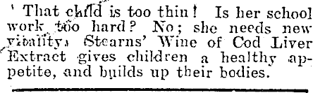 ' That child is too thiu 1 Is her school work, too hard P No; she needs new vitalityi Stearns’ Wine of Cod Liver Extract gives children a healthy appetite, and builds up their bodies'