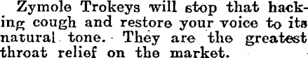 Zymole Trokeys will 6top that hacking cough and restore your voice to its natural tone. They are the greatest throat relief on the market.