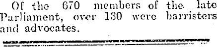 Of the 670 members of the _ late Parliament, over 160 were barristers and advocates.