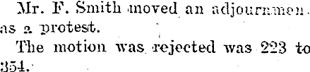 Mr. F. Smith -moved an adjourmnen. as a. protest. The motion was rejected was 223 to 354.