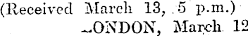 (Received March 13, 5 p.m.) —ONDON, March 12