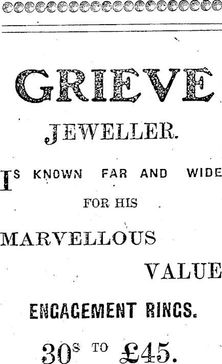 JEWELLER. TS KNOWN FAR AND WIDE FOE HIS MARVELLOUS VALUE ENGAGEMENT RINGS. 30 s T 0 £45.