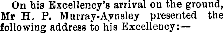 On his Excellency's arrival on the ground, Mr H, P. Murray-Aynsley presented the following address to his Excellency:—