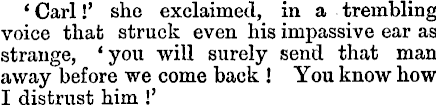 ‘ Carl!’ she exclaimed, in a trembling voice that struck even his impassive ear as strange, ‘ you will surely send that man away before we come back ! You know how I distrust him !’