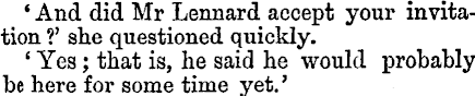 ‘ And did Mr Lennard accept your invitation ?’ she questioned quickly. ‘ Yes; that is, he said he would probably be here for some time yet.’