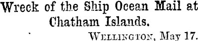 Wreck of the Ship Ocean Mail at Chatham Islands. Wellington, May 17.