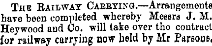 Thb Railway Cabbxixg —Arrangements have been completed whereby Messrs J. M. Heywood and Co. will take over tho contract for railway carrying now held by Mr Parsone,