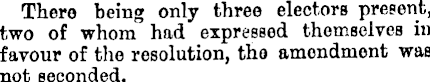 There being only three electors present, two of whom had expressed themselves in favour of the resolution, tho amendment was not seconded.