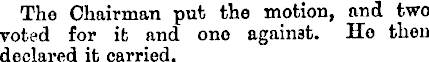 Tho Chairman put the motion, and two voted for it and one against. Ho then declared it carried.