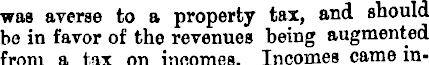 was averse to a property tax, and should be in favor of the revenues being augmented from a tax on incomes. Incomes came in-
