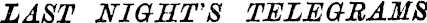 LAST NIGHTS TELEGRAMS