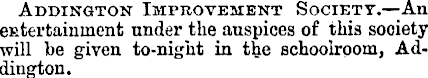 Addington Improvement Society. —An entertainment under the auspices of this society will be given to-night in the schoolroom, Addington.