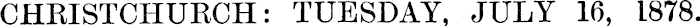CHRISTCHURCH: TUESDAY, JULY 16, 1878.