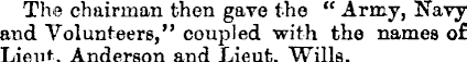 The chairman then gave the “ Army, Navy and Volunteers,” coupled with the names of Lieut, Anderson and Lieut. Wills.