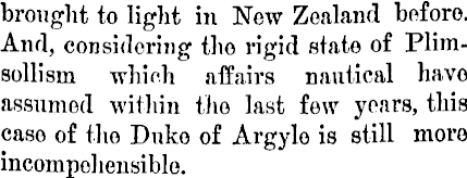 brought to light in New Zealand before. And, considering the rigid state of Plimsollism which affairs nautical have assumed within the last few years, this case of the Duke of Argylo is still more incompohensiblo.