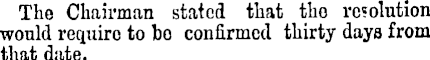 The Chairman stated that tho resolution would require to be confirmed thirty days from that date.