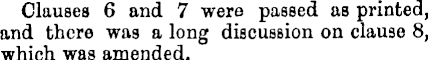Clauses 6 and 7 were passed as printed, and there was a long discussion on clause 8, which was amended.