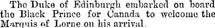 The Duke of Edinburgh embarked on hoard the Black Prince for Canada to welcome the Marquis of Lome on his arrival.