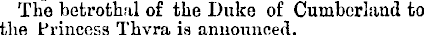 The betrothal of the Duke of Cumberland to the Princess Thyra is announced.
