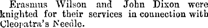 Erasmus Wilson and John Dixon were knighted for their services in connection with Cleopatra’s Needle.