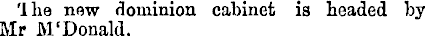 'Hie now dominion cabinet is beaded by Mr M'Douald.