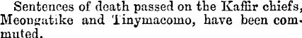 Sentences of death passed on tbe Kaffir chiefs, Meongatike and linymacomo, have been commuted.