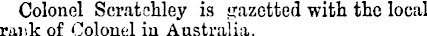 Colonel Scratebley is gazetted with the local rank of Colonel in Australia.