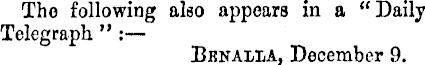 Tho following also appears in a “ Daily Telegraph ” : Bknalla, December 9.