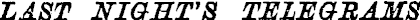 LAST NIGHT'S TELEGRAMS