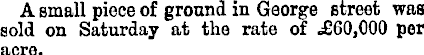 A small piece of ground in George street was sold on Saturday at the rate of .£60,000 per acre.
