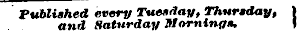 Publlehed every Tueeday, Thursday, ) and Saturday Ufominys. I