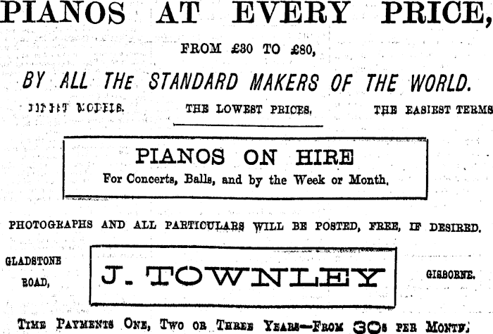 PIANOS AT EVERY PRICE, FROM £BO TO £BO, SY ALL THE STANDARD MAKERS OF THE WORLD. JIMtT yCJ'MB. THB LOWEST PRICES, THE EASIEST TERMS PIANOS ON HIRE For Concerts, Balls, and by the Week or Month. PHOTOGRAPHS AND ALL PARTICULARS WILL BE POSTED, FREE, IF DESIRED, GLADSTONE «T- TO'WnSTLHI’X* Time Payments One, Two or Three Ybabb—Fbom QQa feb Montf.