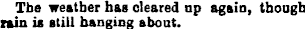 Ona of those unavoidable but tragical incidents, illustrating the deep rooted prejudice of the Native race, occurred at Waipiro Iset week. A man named Beupena to Ana, being thrown from his horse, broke hia leg in two or more plaees. He was seen shortly after the accident by Messrs Kemp uf the Matahia (inland Waipiro) station, and his friends wore strongly recommended to take him down to the local native medical attendant. They simply scouted tho idee, and as in a somewhat similar instance (when a man was wounded through the arm and narrowly escaped with his lite by the ultimate inter-, ferenoe of Europeans), handed him over tq the treatment ot the “ Tohunge Maori.' 1 This occurred about a fortnight ago. an Saturday last Tuta Nibonlho rode jauntily up to the residence ot the medical attendant before mentioned, end equally Jauntily observed—” Oh, I want you to come up end (‘ tapahi') out off a man's leg—it’s quite 1 pel psi,' (soft or flaccid).” He seemed a little annoyed when he was informed that no such thing would be attempted without the preliminary arrival of Dr Pollen from your town, which ot course meant money, with which he would by no means part tor such a purpose, but rode up as laughingly as he came. I suppose the unfortunate man Is deed by this time, and they will opend more money over tho “ tangl,” which will inevitably follow hia decease, than would probably have brought up your doctor two or three times over. When a somewhgt irascible friend of mine here (at Waipiro) informed me lately (22nd inst) that the Oounty Engineer had just ridden up to the Station store, I Impugned his veracity in each a marked manner, that I involuntarily looked round rather anxiously, to see it our local peacemaker in buttons end blue was handy. I have heard of the Greek Kalends, the Millenium, and ponihle aerial excursions of porcine aeronauts, but ths arrival ot the C.E here, beyond the pillars ot Hercules ! I Sir—Mr Editor—l am sure you and every other sensible parson will pardon my absolute incredulity. Winter on the Coast at midsummer I—an impossibility moot people would say, especially after the experience ot late years. There was the C. E., in propria pereona, however, hale, hearty and good humored as ever, Not a bit the worse—any how constitutionally or in temper—for the wiring in process so feelingly deprecated by Mr Milner, or, what is more remarkable, the sympathy expressed by that gentleman when ho gallantly came to the reacua in the columns of your contemporary. “ Come at last,” quoth tfie C.E., with a somnolent smile, addressing the Narrator.
