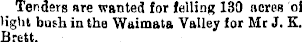 Tenders are wanted for felling 130 acres of light bush in the Waimata Valley for Mr J. K. Brett.