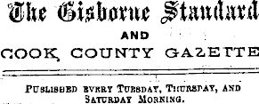 The Gisborne Standard AND COOK COUNTY GAZETTE Published every Tuesday, Thursday, and Saturday Morning.