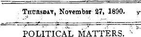 Thursday, November 27, 1890. POLITICAL MATTERS.