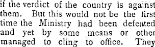 if the verdict of the country is against them. But this would not be the first time the Ministry had been defeated and yet by some means or other managed to cling to office. They