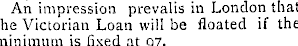 An impression prevails in London that the Victorian Loan will be floated if the minimum is fixed at 97.