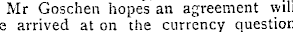 Mr Goschen hopes an agreement will ie arrived at on the currency question