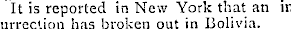 It is reported in New York that an in iurrection has broken out in Bolivia.