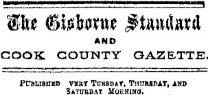 The Gisborne Standard AND COOK COUNTY GAZETTE. Published every Tuesday, Thursday, and Saturday Morning.