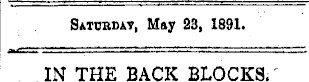 Saturday, May 23, 1891. IN THE BACK BLOCKS.