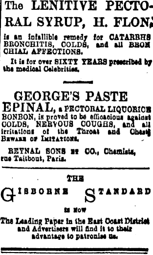 440Page 4 Advertisements Column 5 Gisborne Standard and Cook County Gazette, Volume V, Issue 634, 16 July 1891, Page 4