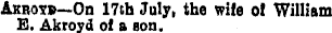 Akbovb— On 17th July, the wife of William E. Akroyd of a son.